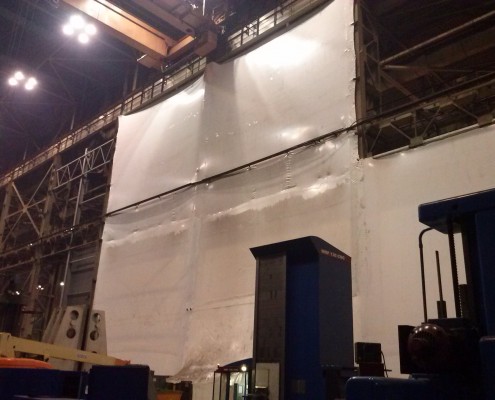 Heat³ Flame retardant shrink wrap has UV protection, is strong and durable and it creates a drumhead-like water and tearproof cover for scaffolding of any size or shape. Shrink wrap is available in a width of up to 15 m, the sheets can be easily heat welded to each other, creating a continuous sheet with no holes or gaps which are common when using traditional canvas and plastic.