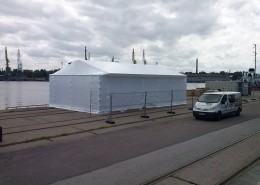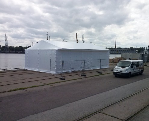 The thickness of construction shrink wrap is usually 150 mic (6 mil) – 300 mic (12 mil), depending on the level of protection needed and the surface of the area to be wrapped. The shrink wrap is available in a width of up to 15 m and length of up to 130 m. The shrink wrap comes in neat rolls, making it possible to even be transported in a car.